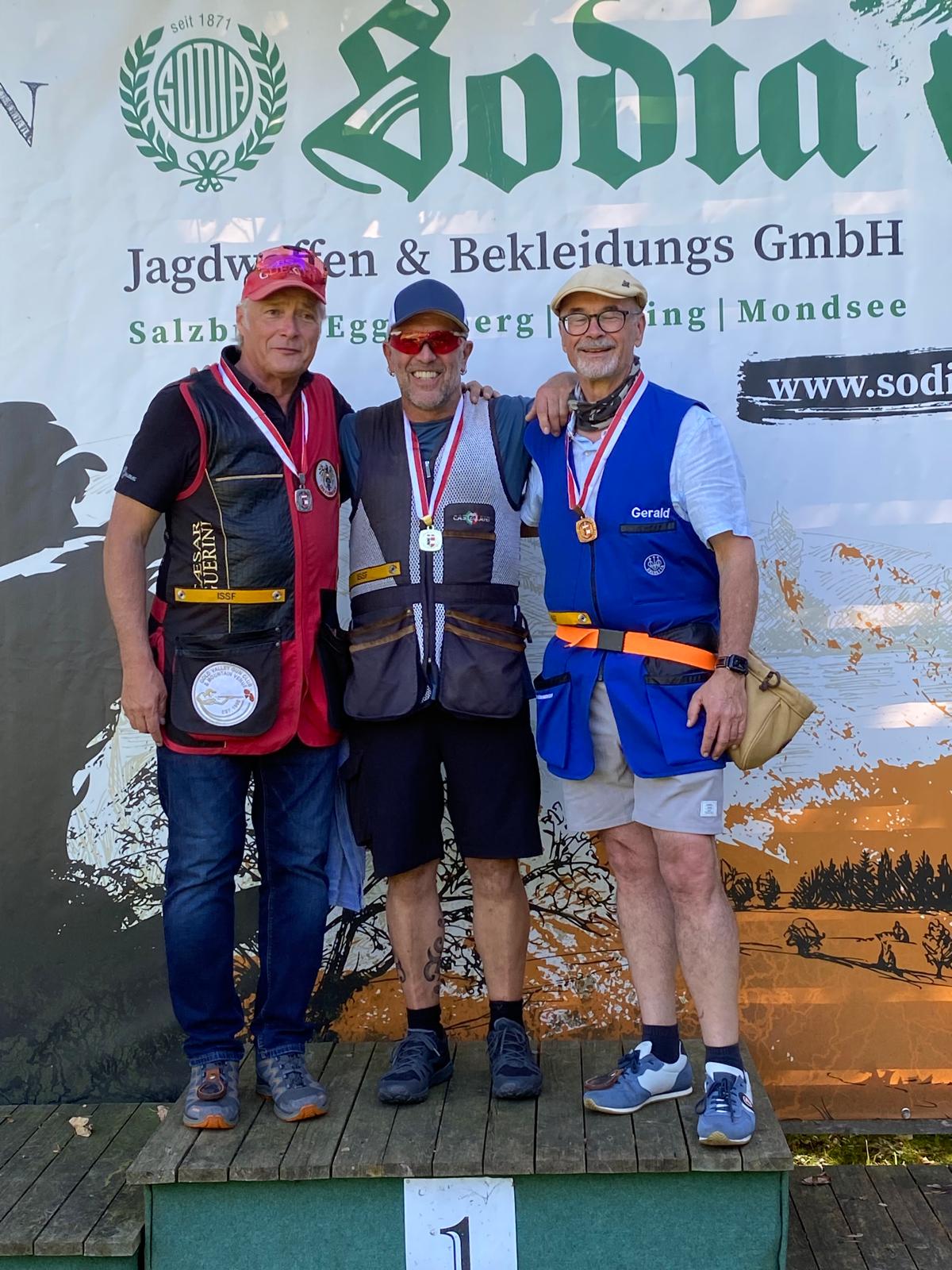 Noch knapper als in der Allgemeinen Klasse war es bei den Senioren. Bernhard Nisslmüller setzte sich erst nach Stechen mit 73+5 Treffer gegen Michael Gstür (73+4) durch. Platz 3 belegte Gerald Dürnberger in seinem ersten Olympisch Skeet Bewerb (41).